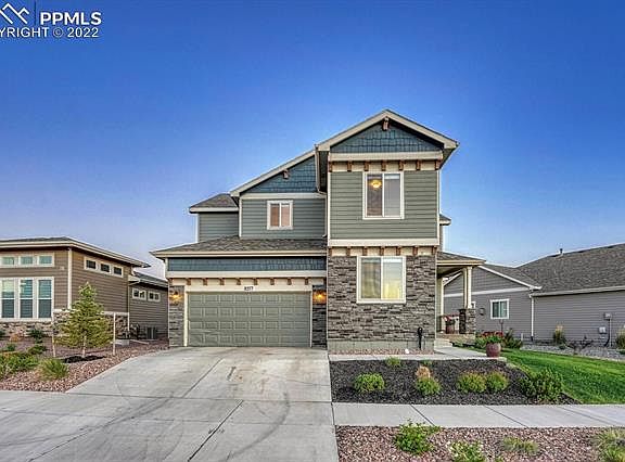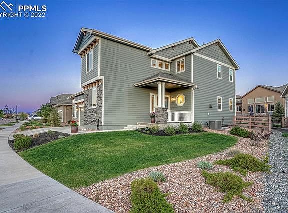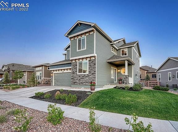 Introducing this 2017 beautifully maintained St. Aubyn two story home located in the Desirable Wolf Ranch community and D20 SCHOOLS!! Just over 3,500 SQ ft, Upgrades include: Tile entry, wood kitchen & dining floors, stainless-steel appliances, gas range, quartz kitchen & bathroom counters, 42" kitchen cabinets with crown moulding, upgraded trim including windowsills, upgraded lighting, ceiling fans in great room and primary bedroom with recessed can lighting in kitchen, ceramic tile bath/shower surrounds, ceramic. tile flooring in baths and laundry, On-Q Smart Home system, Central A/C, whole house humidifier, and much more! Main level has a bright and open floor plan, there is an office/flex room (that can be that 5th bedroom) on the main level, Plenty of extra space in the unfinished basement! The upstairs has a loft area, laundry (Washer & Dryer included) on the same level as the Bedrooms, Must see the spacious Primary Bedroom with a beautiful soaking tub, 5-piece, fireplace and sitting area. Conveniently located to schools, parks, shopping, restaurants, the award-winning Wolf Ranch community amenities include, pool, clubhouse, parks, hiking trails, pond, outdoor concerts and family events! All carpeting has just been professionally cleaned. Extra space in the tandem 3rd bay garage! The backyard is fully fenced and wired for kids and pets. Great lot near trails and open space. Located in award winning Academy School District 20. Don't miss out on this beauty, call for your private showing today!