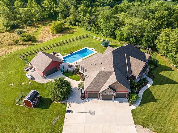 enhanced wood interior trim and doors, attractive wood flooring, upgraded light and plumbing fixtures, 9 ft first floor ceilings. Gourmet kitchen with breakfast area open to the great room. Large master suite. Partial finished, 3,086 sqft basement offering an oversized bedroom with window egress, full Bathroom, spacious entertainment/exercise areas. 3 Car oversized, attached garage, wide enough for 4 cars, (3) 10 ft wide garage doors with work area space and a large closet. 4th side garage door. 2 car detached garage for toys located close to the home and provides nice access to the pool area offering a covered side patio space with ceiling fans during those warm days