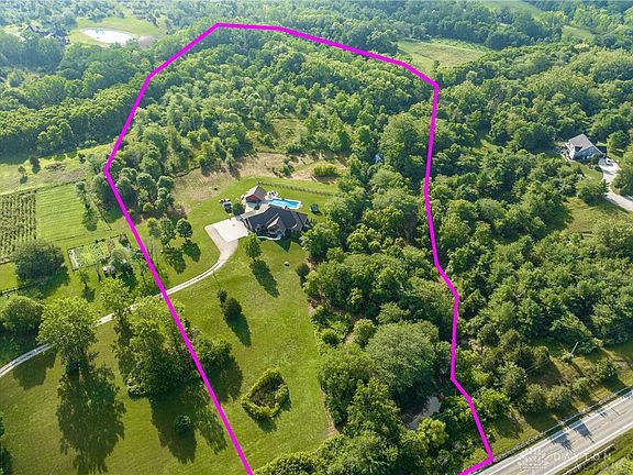 Stunning 5 Bedroom 3 Full Baths 1 half bath custom built Denlinger ranch home offering a private retreat like setting on picturesque Trotters Creek. 15 rolling, wooded acres with pathways and multiple access points for the creek to experience Mother Nature up close with amazing wildlife. Grand great room with vaulted ceiling open to the kitchen/eating area, dining room, large windows to view the beautiful natural surroundings. Wood burning fireplace, stunning stone hearth and surround,