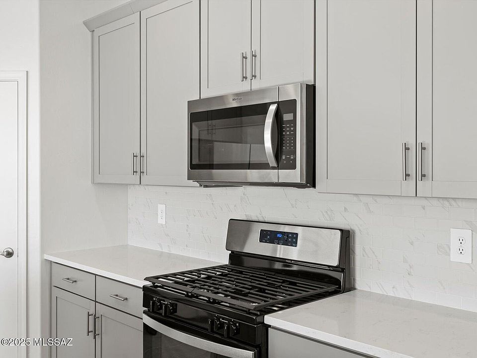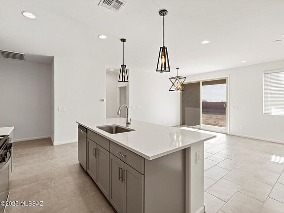 Spacious 3BR/2BA Home in Alamar at Rocking K!This open-concept home features a large great room and kitchen with Pebble cabinets, white-toned quartz countertops, grey tile flooring, and neutral tan carpet. Located in the master-planned Alamar at Rocking K community, offering five floorplans and access to award-winning Vail schools. Enjoy amenities like pickleball courts, playgrounds, and a splash pad. Move-in ready with washer, dryer, fridge, and whole-home blinds. Built with energy-efficient features for better health, comfort, and savings!