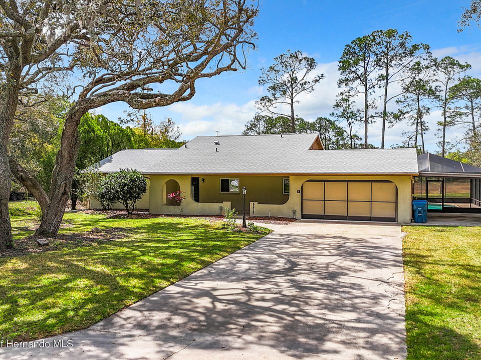 Amazing opportunity with this move-in ready 2 bedroom, 3 bath, pool home that sits on a beautiful .40 lot. Rare opportunity to purchase the adjoining ½ acre lot separate from the sale of the home. As you drive up you will be greeted with a lovely landscaped front yard and an extended driveway. Get creative while living here and redesign with your own modifications you've been dreaming of. Lots already done for you.... Roof 2021, ALL new Andersen windows and sliding doors throughout 2022, drain field replaced 2022, new electrical panel, new interior paint, all new light fixtures, outlets and covers, new screens on the pool enclosure, new pool pump and filter, new stainless-steel appliances, water softener, new landscaping, and beautiful hardwood flooring throughout most of the home. As you enter you will be greeted with a large open floor plan that features a 26x27 great room with a stone-faced, wood-burning fireplace to enjoy on those rare crisp evenings, massive windows that overlook the beautiful backyard and new double slider doors lead to the expansive screen enclosed lanai/pool area. The kitchen features ample space and a breakfast counter for extra seating. The master bedroom is generous in size. The master bath has a tile shower and walk-in closet. The 2nd bedroom is also spacious in size. A dedicated laundry room off the 2-car garage includes the washer & dryer and a convenient 3rd bathroom. Relax and enjoy the beauty and serenity by the pool that overlooks the nicely landscaped backyard with no rear neighbors, flood cameras are included. There is also a 1 car carport with flood cameras and (2) 50-amp RV hook-up. The Ring doorbell stays. Come envision your new beginning while it's still available! NO HOA, NO CDD and NO FLOOD insurance required!! Close to the Suncoast parkway for quick access to the airport, Tampa, Clearwater and St. Pete Beaches (Ranked in the top 5 Beaches in the US), also close to the famous Tarpon Springs Sponge Docks. Conveniently located close to restaurants, shopping, schools, and hospitals. Repaired Sinkhole with docs. PLEASE DO NOT WALK THE PROPERTY WITHOUT AN AGENT.