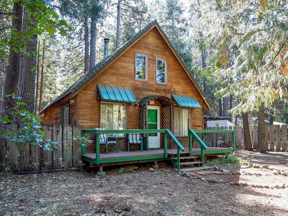 Cute and cozy mountain cabin on half an acre. It is 1,128 sf with 2 bedrooms and 1 bath, laundry room and a detached 1 car garage. There is a fenced back yard and a deck. It could possibly be used as a vacation rental but it could also be your forever home.