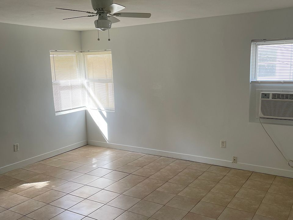 Complete newly-finished renovation. All new electrical and plumbing. New A/C and heat unit. Upgraded appliances--full-size stainless steel refrigerator, glass cooktop with oven. New kitchen cabinets, countertop, bathroom toilet and sink, vanity and light fixtures. New hot water heater. Porcelain tile floors throughout. New paint. Must see to appreciate! Manager lives on site.