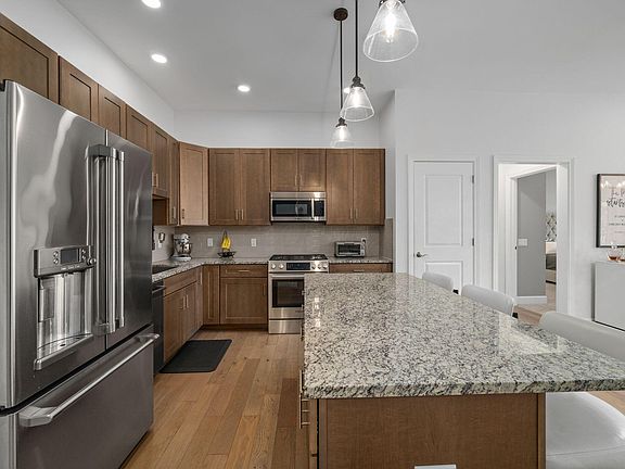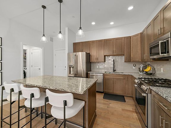 50% tax abatement through 2032! Welcome to this stunning 2nd-floor condo in the highly sought-after 828 at The Yard. Offering 2 bedrooms, 2 full bathrooms and over 1,400 sq ft of single-level living, this home blends modern elegance with everyday comfort. The chef's kitchen boasts shaker cabinetry, granite countertops, stainless steel appliances including high end refrigerator, a center island and tile backsplash. The open-concept great room features oversized windows and direct access to a private, covered balcony overlooking green space. The deluxe primary suite impresses with a spa-inspired ensuite featuring a soaking tub, frameless glass shower, dual vanities, and a walk-in closet. A generous second bedroom with its own large closet and adjacent full bath provides the perfect guest retreat. Current owners have installed a Murphy bed in the second bedroom, chandelier in the dining area, hardwood flooring in the primary closet and smart fans in the bedrooms. Assigned garage parking + large storage unit. Residents of The Yard enjoy premium amenities: pool, fitness center, clubhouse, restaurants, shopping, and vibrant city living. Prime Grandview location with unbeatable convenience and lifestyle. See A2A remarks.