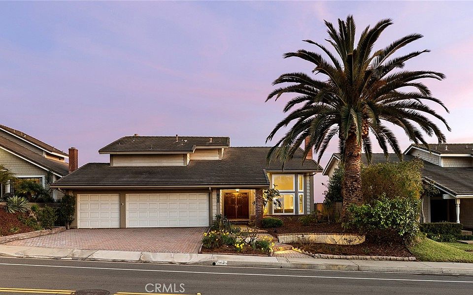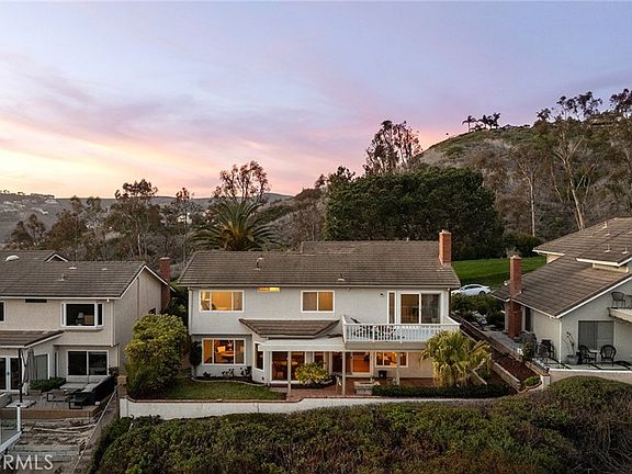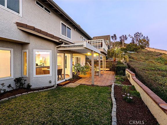 Sited on one of the highest & most spectacular view sites within the prestigious Coast District at Eagle Ridge, this home offers major ocean views, sure to inspire coastal living at its finest. Positioned on a single-loaded street with a grassy park across the way & open to serene foothills, the location within the neighborhood is exceptional. Upon arrival, the home features a sought-after, side-by-side 3-car garage & mature Canary Palm adding to the curb appeal. Inside, a fire-warmed living room enhanced by ascending ceilings draws you within the light-filled interior. Undeniable views from nearly every major room make living here special. Rich, hardwood flooring ties the living spaces together, uniting the lower level, staircase, and part of the upper with an exotic tone - rare to find. In the kitchen, enriched wooden cabinetry teamed with leathered granite counter tops & stainless appliances. Major ocean horizon views from every window create an amazing living environment. A downstairs bedroom, full bathroom & laundry mudroom with access to garage complete the lower interior. Outside, a covered patio off the living space leads to a grassy yard all offering picturesque views of the rolling canyon below & a crisp ocean horizon with ever-changing sunsets. Upstairs offers three generous bedrooms all with major views. Two guest bedrooms share a full bathroom with dual sinks. A huge primary suite with high-vaulted ceilings invites with gas fireplace anchoring the room. Featuring the best views in the home, especially from the private deck, waking up here is beyond peaceful. A his & hers closets (hers being a large walk-in) & primary bathroom with dual sinks, soaking tub & walk-in shower complete this oversized suite. Notable details: only two adjacent neighbors (single-loaded part of street), preserved ocean views, good size home & ideal floor plan, no power lines (underground power service), good distance from any major roads, walking-distance to award-winning Truman Benedict Elementary, and across from a serene community park. Nearby hiking trails, world-class surfing, easy access to the FWY, shopping, central to all that San Clemente & Dana Point has to offer. A quick drive to the historic downtown, new restaurants, the 2.5 mile beach trail, SC Pier, & amazing beaches. For those in pursuit of an ideally-located home with major privacy, relief, coastline & ocean views, this is it.