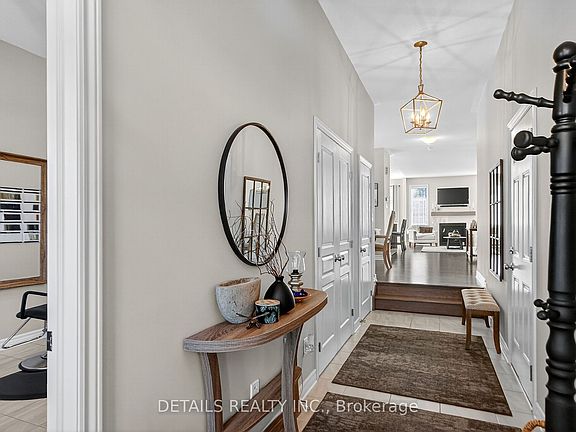 This magazine-worthy bungalow combines refined design with nature's tranquility. Set on a quiet street on a premium lot backing onto trails and green space, this home offers peaceful views and no rear neighbours. Inside, discover an inviting open layout featuring rich hardwood floors, elegant light fixtures, and a chef-inspired kitchen with an upgraded extended island and cabinetry with a built in beverage fridge. Enjoy the seamless flow into the living room, where a gas fireplace creates an inviting focal point. The dining room placement offers a sophisticated space to host all occasions. The primary suite feels like a retreat with its expansive window and a peaceful view of nature, a stylish ensuite with a dedicated make-up vanity and walk in closet. Two more bedrooms and a full bath completes the main level, one currently being used as a salon which is very versatile and perfect for those with a home based business with convenient access upon entry . The lower level extends your living space with a spacious rec room and a legal bedroom complete with its own ensuite bathroom, perfect for guests, family or in-law potential. With a builder's extended garage there is plenty of room to park two vehicles in the garage and four in the driveway. Thoughtful upgrades throughout, this home delivers exceptional style, comfort, and privacy. Honorable mentions, lots of closets on the main level and a huge storage room in the basement. Step outside for your morning walk and come back to enjoy nature from your very own backyard. This home shows like a model!