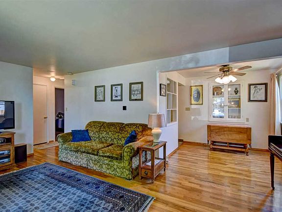 Rock Solid 50's Rancher with 2 Car Garage! Large living room with wood stove and gorgeous hardwood floors throughout main floor. Updated main floor bathroom. Spacious formal dining with built-in storage. Light & bright kitchen with full appliance package. Full basement with tons of storage space with additional bedrooms. BRAND NEW high efficiency furnace & sewer line. Covered patio area to relax on. RV Parking in back. Large garden area in fenced backyard.