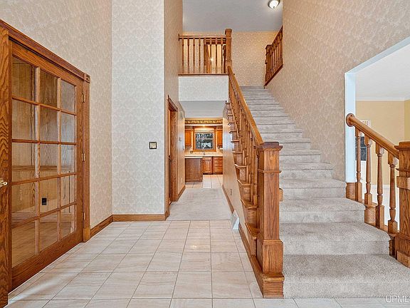 This exquisite 3-bedroom, 4-bath executive home blends timeless craftsmanship with modern comfort and an impressive list of amenities. A grand two-story foyer welcomes you with a sweeping central staircase and leads into beautifully appointed living spaces. French doors open to an elegant library featuring oak judge’s paneling, custom built-ins, and rich oak flooring—perfect for a warm, private office or reading retreat. Formal living and dining rooms offer ideal spaces for gathering, enhanced by 9’ ceilings that flow throughout the main level. The chef’s kitchen sits at the heart of the home and offers excellent flow for entertaining with all appliances included, a walk-in pantry, breakfast nook, and open views into the great room’s fireplace with custom built-ins. The spacious family room provides direct access to the large back deck, making indoor-to-outdoor living seamless. A first-floor laundry with walk-in closet and a convenient back entry from the heated attached garage complete the main level with thoughtful function and convenience. Upstairs, the expansive primary suite provides a true retreat with a recently updated spa-style bath featuring a large tiled walk-in shower, slipper tub, dual custom vanities, and a huge walk-in closet complete with built-in ironing station. All bedrooms are generously sized and filled with natural light. The finished lower level is designed for entertainment, offering a large media room wired for sound, dimmable lighting, and a big-screen TV that stays. A wet bar, half bath, and open area for table games or gatherings make this an exceptional destination for hosting. The lower level also includes a large mechanical and storage room. One of the home’s most remarkable features is the 31’ x 47’ heated and air-conditioned dream garage, designed for hobbyists, collectors, or those seeking extraordinary workspace. This 4-car, drive-thru garage is plumbed for a future bath, set up for a wood stove, and attached to a charming vaulted 3-season room with doors leading to the patio—an ideal spot for relaxing or hosting guests. Above the garage is a fully finished 21’ x 43’ bonus room, heated and air conditioned, perfect for a guest suite, studio, office, gym, or recreation space. The private fenced backyard is beautifully designed with raised garden beds overflowing with perennials and herbs, paved walkways, and a spacious patio area for outdoor dining and relaxation. A separate fenced dog run adds convenience for pet owners, and the thoughtful landscaping creates a peaceful, welcoming outdoor retreat. Additional inclusions add tremendous value: big-screen TV, barstools with wine cooler, all appliances, window treatments, and central vacuum piping ready for a future unit.