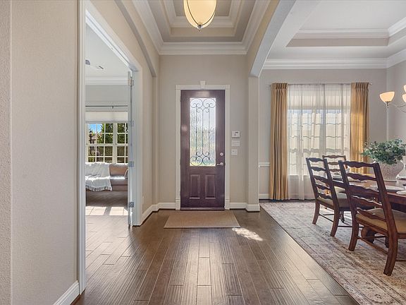 Elegant single-story golf course residence in the sought after Buffalo Creek Estate. Nestled along the fairway of the prestigious Buffalo Creek Golf Course, this beautifully appointed home offers a rare combination of sophistication, comfort, and function. Designed for effortless living, the residence features four spacious bedrooms and three full bathrooms, with both the primary suite and one secondary bedroom offering private ensuite baths—ideal for guests or multigenerational living. The thoughtfully designed layout includes a dedicated study at the front of the home, a formal dining room perfect for entertaining, and a secondary living area situated between two guest bedrooms—providing flexibility for a media room, playroom, or retreat. The open-plan kitchen is a true centerpiece—offering generous cabinetry, a large pantry, a breakfast area and a granite center island perfect for casual seating and entertaining. The adjoining living room, complete with a warm gas log fireplace, creates an inviting space to gather and unwind. A separate laundry and mud room off the garage entry adds convenience and organization. The heart of the home flows seamlessly toward the expansive backyard overlooking the fairway, where an oversized covered patio and built-in grill create the perfect setting for outdoor dining and relaxation. With its scenic golf course views and well-planned single-level design, this residence delivers the perfect blend of elegance, convenience, and leisure. Residents also enjoy exclusive use of the community’s resort-style amenities including a large swimming pool, tennis and pickleball courts, scenic walking trails, and a play park for younger children—making this the perfect place to call home.