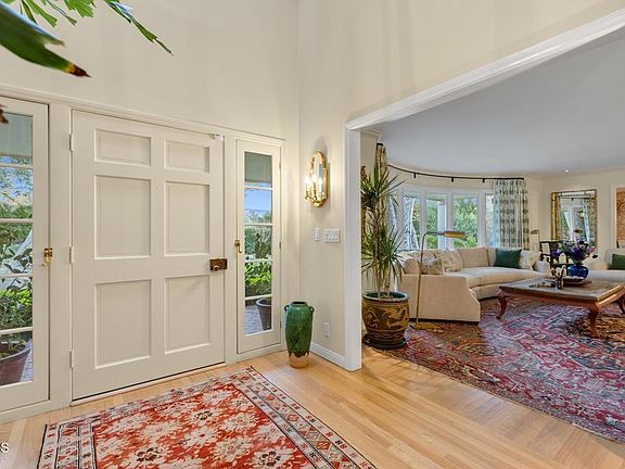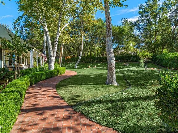Located within walking distance to downtown Ojai, this elegant family home has it all. Light and bright, you will love the open spacious floor plan. The beautifully detailed kitchen and den open to a sunroom, with a massive rock fireplace, which overlooks the private backyard and swimming pool. There are four fireplaces, a large office, downstairs primary bedroom with a 'spa-like' bath, formal living room and formal dining room - all with incredible details, balconies and patios to bring the outside in. This property, just over an acre, has an art studio, garden sheds, meandering pathways, a bridge leading to a five star chicken coop, orchards, vegetable and rose gardens, wonderful mature trees, views of the mountains and yes a Tree House. Plenty of room for your family and friends! There is a one bedroom attached guest quarters. Completely private and quiet and yet so close to shops, restaurants, and the Ojai Arcade. Don't miss this lovely, detailed home.