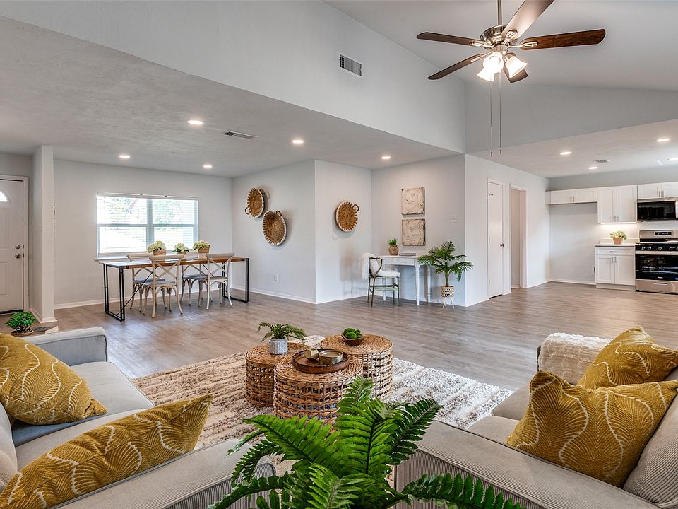 Beautifully redone 3-2-2 with a uniquely open floorplan! Home has new cabinets, new quartz countertops, new roof and windows, luxury vinyl plank flooring and carpet.