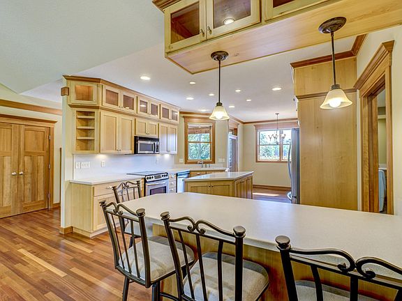 This stunning walkout rambler offers space, privacy, & all amenities on the main level for ultimate convenience! Step inside to an open layout adorned w/ cherry wood floors, high ceilings, & Marvin Integrity windows that flood the space in light. Meal prep is a breeze in the generous kitchen feat. SS appliances, alder cabinets, a breakfast bar, & dining nook. Unwind in sizable bedrooms incl. the private owner’s suite w/ an ensuite bath & walk in closet. The spacious walkout LL & bonus room above the 3-car garage provide ample room for hobbies & activities! Add’l amenities incl. a large mud room, home office, 3-zone heating, a new furnace & roof, Leaf Guard gutters, & fresh exterior paint. Situated on a quiet dead-end street and surrounded by mature trees, this 2+ acre lot offers the perfect setting for private outdoor living. Enjoy the spacious yard with a sprinkler system, a backyard patio, a sizable covered front porch, beautiful gardens, & abundant wildlife. Hudson school district. Your dream home awaits!