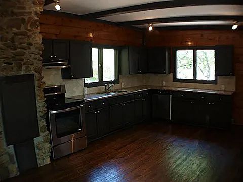 Log cabin right across the street from the lake. This home has a pool with a mother-in-law suit, separate kitchen, and separate entrance.