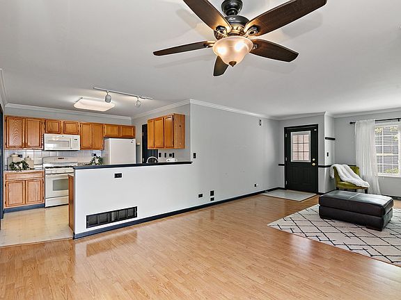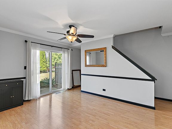 This light and bright end unit is an exceptional find, offering so much home for the money! The expansive first-floor living room and dining room combo features wood laminate floors and a slider leading to patio and green space--perfect for relaxing or entertaining. The kitchen offers plenty of cabinet and counter space, and an open half wall to the living/dining area enhancing the spacious, airy feel of the home. On the second floor, the large primary bedroom boasts a large walk-in closet and in addition, there's a second bedroom and a large bath with dual sinks, tub, and walk-in shower. The laundry area, conveniently located in the hall closet, includes a newer (2023) washer and dryer. The full finished basement offers additional living space, including a utility room and storage room with shelving. Extra guest parking is available, and the location is ideal, close to shopping, downtown Elburn, transportation, and the Metra station.