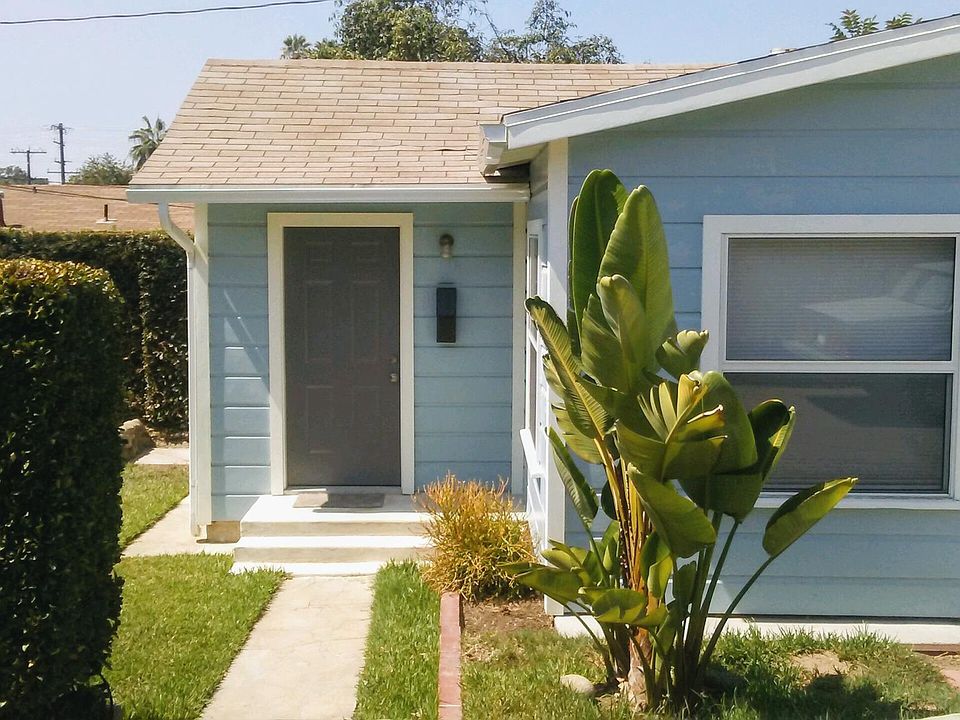 Quiet backhouse for rent Fresh paint throughout New granite counter tops in kitchen New cabinets New tile in kitchen Dark bamboo hardwood floors New carpet in bedrooms Cathedral ceilings in bdrms Stackable washer dryer hook ups Street parking Sotrage space length of garage AC and heating Large living room Dining area Absolutely NO PETS