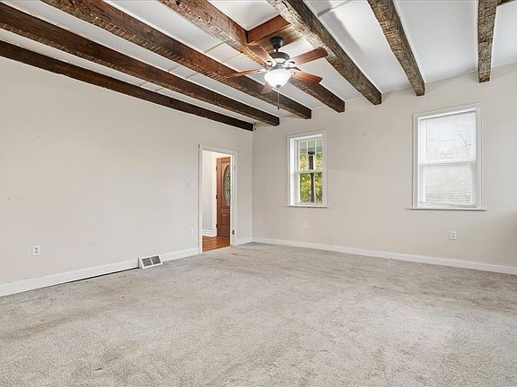 Find your peace on 2.11 acres of flat, usable land in Cross Creek Twp / Burgettstown, with views of farmland across the road. This 1900s farmhouse is designed for convenient living with a main-floor bedroom with exposed beams, full bath, and laundry. Step into a wide foyer with original hardwood floors flowing into a sun-filled living room with tall ceilings and custom built-in seating. The spacious eat-in kitchen includes all appliances and a large sink overlooking the private yard. Unwind in the three-seasons room surrounded by wraparound windows. Upstairs, two more oversized bedrooms offer ample space, each with a decorative fireplace. The massive detached garage features a two-car bay plus an oversized workshop with a floor drain—ideal for collectors or a home business. A durable metal roof, dry walkout basement & 200-amp service offer complete peace of mind. Located in the Avella School District. Search the property address on YouTube for a full 14+ minute video tour.