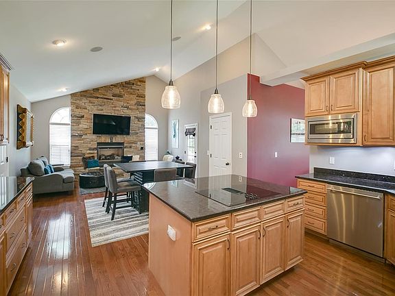 Stunning Custom Atrium Ranch style home in quiet neighborhood on a cul de sac! Huge open floor plan with real hard wood flooring, gas fireplace in great room with vaulted ceilings, built in book cases, lovely floor to ceiling windows with custom power shades. Divided bedroom floor plan offers a master bedroom suite built for king with over sized walk in closet, walk in tiled shower with multi head service, double vanities and separate garden tub. Enjoy separate dining off the kitchen, additional breakfast area, breakfast bar, hearth-room and main floor laundry! Lower level walks out to a charming level fenced back yard and patio area for entertaining. Living room, wet bar or mini kitchen, additional bedroom with full oversized bathroom and additional office. There is plenty of room for additional storage in the unfinished portion of the basement and additional walk out access for easy access. This home is a MUST SEE!