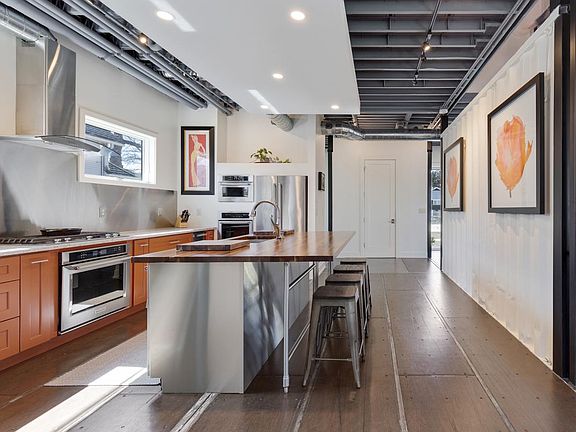 Masterful design and modern luxury are uniquely embodied in this amazing home built from 7 massive shipping containers. The spacious kitchen is finished with stainless steel appliances, stainless steel backsplash, granite countertops, and an oversized island with a butcher-block countertop. You are sure to love the bright and open living space, purpose-built for entertaining. This home features eleven-foot ceilings with an abundance of floor-to-ceiling windows. Clean lines and authenticity of materials such as the original container floors, sliding steel doors, hooks, and hardware make this home a true work of art. The full, deep pour, finished basement boasts a huge recreation room, storage, and a full bath. This home showcases a magnificent second-story Trex deck and a private backyard patio. The massive garage features epoxy flooring and ten-foot doors that can fit a full sized truck. Limitless potential living space above the garage. This "Coach House" is drywalled and has a split-system HVAC and is rough plumbed for a bathroom and kitchen. WOW! A+ location close to schools, parks, the Fox River, and all the fine dining, shopping, and entertainment in beautiful downtown St. Charles! Featured in the Daily Herald, Chicago Tribune, YouTube and the upcoming series "House of What". Call Annie VanBroeck for all showings and listing questions