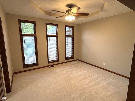 Beautiful, custom built, 2100 square foot brick ranch home on golf course with inground pool! All of the work is done with this one, 3 bedroom, 2 full bath home that has had the entire interior and exterior freshly painted. New carpet and pad throughout as well as new vinyl plank flooring in both bathrooms. Beautiful stained woodwork with solid wood interior doors, fluted woodwork archways, and trayed ceilings. Huge great room has cathedral ceiling, skylight, & gas log fireplace. Split bedroom floorplan. Bedroom 2 has a vaulted ceiling giving the room a more spacious feel, and a walk in closet. Master bedroom is spacious enough for the largest furniture set, has a beautiful tray ceiling and double doors entering into master bath. Master bath has jetted whirlpool tub, new plumbing fixtures, separate shower stall, and his and her closets. 2nd bathroom has new vanity, flooring, plumbing fixtures, mirror and lighting. Kitchen has eat in breakfast area, breakfast bar seating, black stainless appliances including a 5 burner gas stove, and plenty of cabinet space. Formal dining room adds extra seating. Enjoy your private 32x16 fiberglass pool with stamped concrete apron. The pool is a salt water chlorine system with a heater to enjoy a longer pool season. This home backs up to the golf course and has no backyard neighbors. The deck and pergola were just freshly stained. This home has the greenest lawn on the street thanks to the six zoned irrigation system.