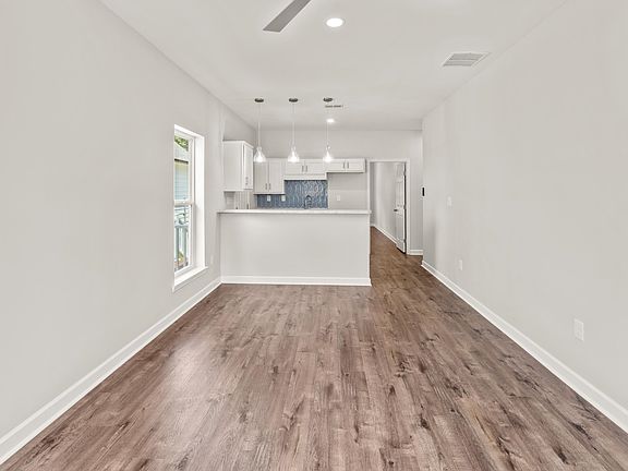 Large front porchThree-bedroom two-bath homeLaundry closetWood laminate flooring