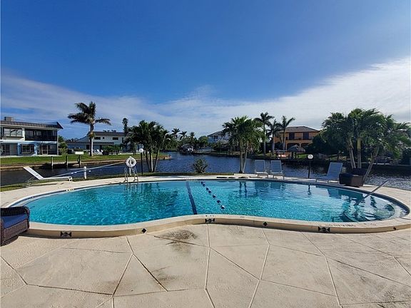 THIS IS IT....the one you have been looking for...YOUR paradise has been found! This Cape Coral Condo is perfectly located within walking distance of the bars and local restaurants AND in a GREAT neighborhood of Windsor Manor. End Unit, opens up to (heated) pool area, private entrance, with HUGE intersecting canal views, (community boat docks available). Open B14 and head up the stairs, to find a beautiful, newly decorated 1 bedroom, 1 bath Condo. Boasting a modern open kitchen and fresh new floors. In the master, the bed is KING SIZE and the NEW sofa in the living-room makes a pull out QUEEN SIZE sofa bed. (The owners upgraded the mattress padding, to include comfort!) The bathroom has been remodeled. The entire Condo has lots of natural light, with a "beachy feel" (no pun intended!) everything is new, and you will find most everything you will need already in the Condo. The owners have included lots of little extra's! Just bring your clothes and a tooth brush. P.S. Did I mention the tiled, screened in Lanai? Wow, this is the most beautiful view I have seen yet Dolphins! Turtles! Manatees! Also available for season 2026 $2200/mo or non-season $1800 or long term annual rental $1600/mo.