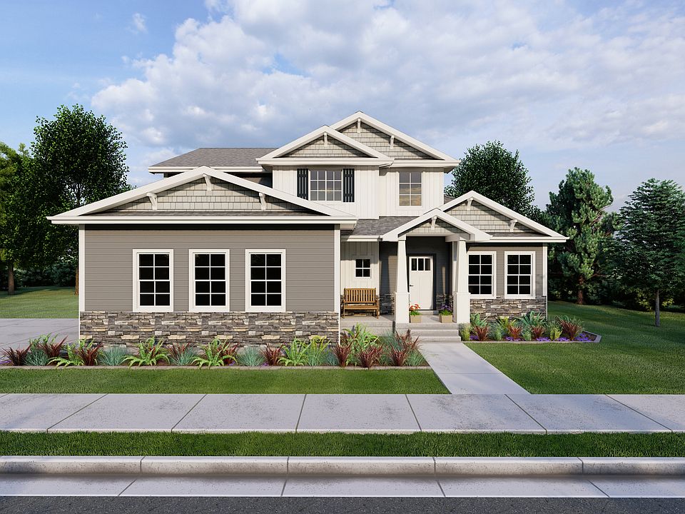Welcome home to the Edgeworth by OLO Builders. Upgraded Owner Suite with Cultured Marble Walk In Shower; Soaking Tub with Cultured Marble Surround, Dual sinks 2 Car Side Load Garage. Craftsman Elevation. This modern home provides natural light in every corner. Upon entering the home, you can choose to have a bedroom or office off the main entry. Down the hall leads to a half bathroom/powder room, and then the main living and entertainment area. This great room has a vaulted ceiling, is open to the upstairs, and is surrounded by windows. The kitchen has an abundance of cabinets and a large walk-in pantry. The owner's bedroom is located on the main floor, off the other side of the great room. It has a large walk-in closet, private toilet room, and a spacious shower and tub area, that is perfect for relaxing. Off the garage, there is a drop zone (mudroom), half bath, and large laundry room. Upstairs there is a flex area (loft), second laundry room, three bedrooms, and a full bathroom. This home can also include a full, unfinished or finished basement*. In the basement are three additional bedrooms, a full bathroom, a family room, several storage rooms, and a cold storage room. Choose from a Farmhouse, Craftsman, Prairie, Modern, Mtn. Rustic, or Simple Traditional exterior, as well as a front or side-facing garage. Call today to start customizing your new home!