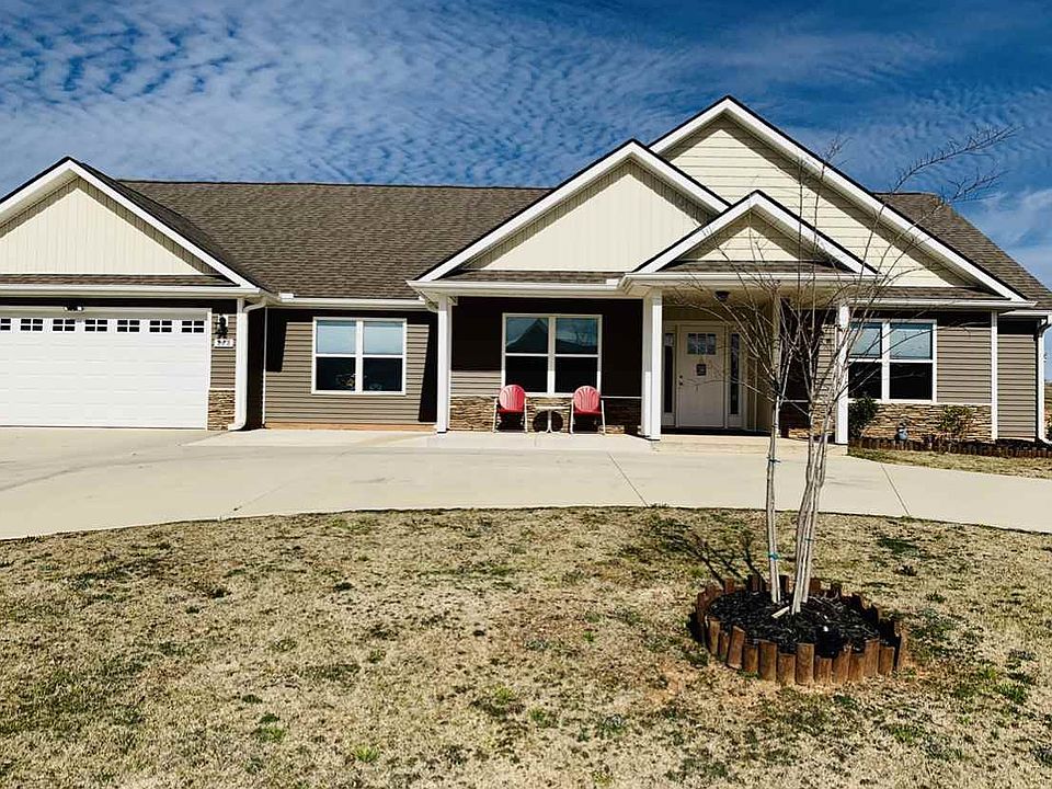 Honey stop the car for this newer construction Craftsman Cutie! This 4 bedroom, 2 bathroom home has 1,981 spacious square feet, an open floor-plan with lots of windows & natural light throughout, vinyl plank hardwood floors, a kitchen that would make any chef happy with a huge island, gorgeous granite countertops & custom cabinets. The split floor-plan allows for maximum privacy and the master bedroom is spacious with an en suite that feels more like a spa with a huge tile shower, double shower heads and a separate water closet. This is the perfect home for entertaining both inside & outside with a huge concrete patio on the back porch that is perfect for grilling & entertaining. The 4th bedroom could easily be a recreation room or home office if desired. This home has so many extras which includes 11 feet ceilings in open concept living room, a circular driveway with lots of room for parking, an additional covered parking in back yard that is perfect for boat storage, and a matching storage building that will convey with the property. There is plenty of storage with an oversized 2+ car garage, huge walk-in closets & attic storage available. This beautiful home is convenient to Greer, Greenville & Spartanburg yet this neighborhood is located in the beautiful countryside where mountain views & the sound of birds chirping can be heard in the backyard. Schedule an appointment today because all this home needs is your rocking chairs on the front porch for enjoying beautiful sunsets!!