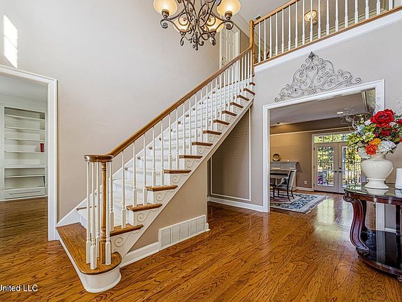 This stately home offers 4 Bedrooms (3 primary suites !) and 4-1/2 Baths. Gourmet Kitchen features tile flooring, granite countertops, double ovens, trash compactor, smooth cooktop island, under cabinet knife and spice organizer plus bread box drawer, pantry. Formal Dining Room with hardwood flooring; Sunroom loaded with windows overlooking pool and lake; 24.5x17.11 Great Room w/Fireplace and Gas Logs.; 15.5x13 Study w/built-in shelving and hardwood flooring. 17x16.8 Primary Bedroom down offers salon Bath, etched and beveled glass windows, double sinks with knee space, corner tub w/jets, walk-in shower, walk-in closet plus additional closet space in Bedroom. Upstairs offers loft, two oversized primary suites-each has salon Bath with separate tub and shower, huge closet; one Bedroom has 12.11x11.7 Bonus Room adjoining. Additional Staircase leads to 21.3x12.10 Bedroom #4 with Bath. Other Features include impressive entry area, 3 HVAC units, 2 hot water heaters, Laundry Room with upper and lower cabinets plus shelving; floored attic; smooth ceilings. French Doors are featured throughout home. Situated on 2 acres & overlooking lake, conveniently located, this beautiful home also features a large deck, oversized double Garage, 30x15 detached Garage/Workshop, In Ground Pool w/diving board; large pool apron for sunning & entertaining. Gazebo; architectural shingle roof, stacked stone border flower beds and extra parking. Nothing is left out !