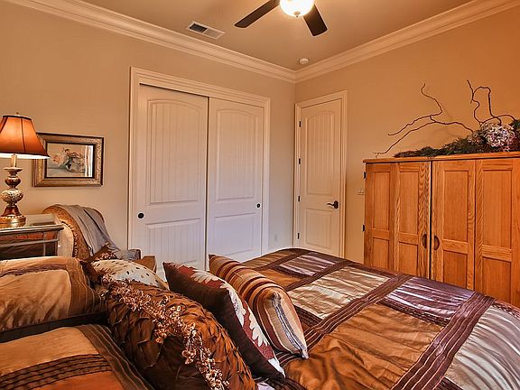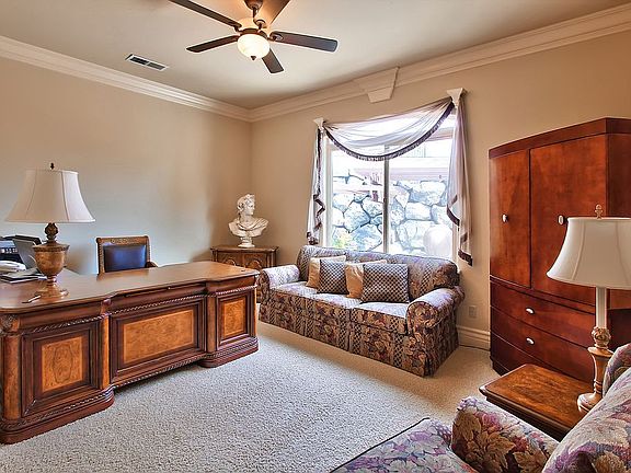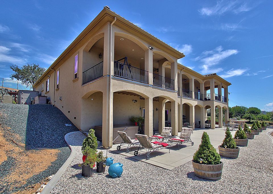 This exquisite home has it all! Beautiful upgrades, stunning views, horse property, chefs quality kitchen, room for toys, private gated courtyard entry and in-laws quarters! Don't miss viewing this custom 4 bedroom, 4 bath home. 2 fireplaces, 8 ft. doors and 12 in thick walls which offers country living, city close!