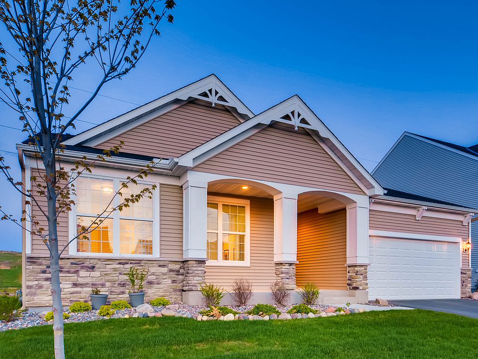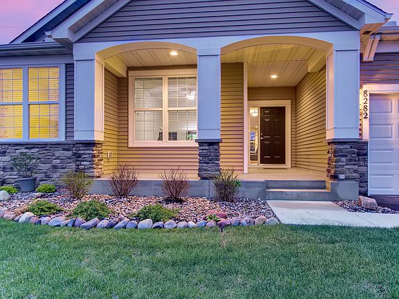 One level living AMBERWOOD plan in the sold out Donegal neighborhood. All bedrooms, bathrooms, kitchen, living room on one level. This home features 9' ceilings & open floor plan allowing an abundance of natural light. The master bedroom features a master bath with a separate Jacuzzi air tub, shower & large walk in closet. Massive lower level is egressed & unfinished for storage or it could be finished into a living area & bedroom(s). Maple Grove Central Park is walking distance from community.