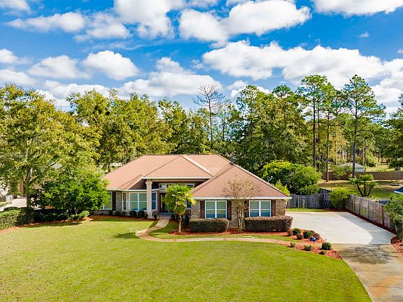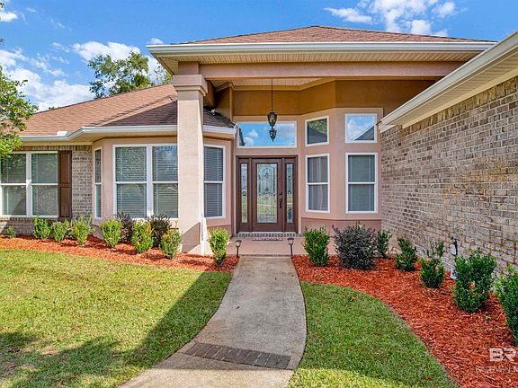 Discover the allure of living in one of the most desirable Wolf Bay waterfront subdivisions in Foley, Alabama. Sitting along serene waterfront, the coveted Graham Creek Estates subdivision features large lots, mature landscaping and a waterfront park area with neighborhood launch ramp and fishing dock. This custom built 3 bedroom / 2 bath home sits on a 120 x 269 foot lot with many mature trees and shrubs along the fence line creating a very large private backyard retreat. As you enter the home, you are in the heart of the dining room, living room and a den. While set towards the rear of the home is the kitchen with the primary suite to one side of the living area and the guest bedrooms on the opposite side of the home with an additional bathroom. The oversized primary bedroom also features a 17 x 12 sitting area off the bedroom that has double french doors to the patio and is perfect for a private seating area or home office. The large ensuite bathroom features dual sink custom cabinet vanity, granite counters, a soaking tub and separate cultured marble walk in shower. Two additional bedrooms and guest bathroom are located on the opposite side of the home creating privacy for everyone. The great room has soaring vaulted ceilings and to one side a separate seating area with bar while to the other side is the living area extending out to the back patio and opens to a relaxing screened lanai with a 9x14 heated and jetted spa/pool. Back inside, the kitchen features granite counters, a deep farmhouse sink, full suite of stainless steel samsung appliances and custom wood cabinets. An oversized 24'x24' garage and workshop area with additional floored attic space and additional closet provides plenty of space for storage. This home also features all solid surface flooring with tile floors and laminate wood flooring in the bedrooms, custom wood blinds throughout the home and a whole home central vacuum system. See Virtual Tour 1 link for property video & drone video