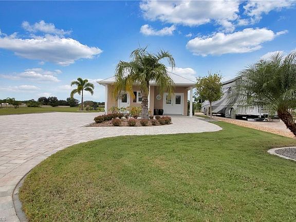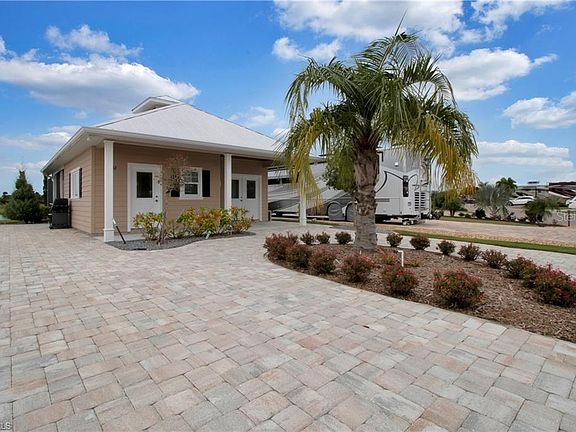 A waterfront beautifully constructed casita in Thornton Creek Motorcoach Resort awaits new owners! No details were missed during the construction of this structure, including using impact windows/doors, hardy-board siding, and more. Inside find a lovely oversized bedroom with porcelain wide plank tile throughout, and an en-suite bathroom with zero reveal into the glassed shower with upgraded tile work and lovely detail. The outside kitchen and dining area also boasts plank tile, and tongue and groove wood ceiling details, with both can lights and custom fans and pendants. The kitchen has a separate island and features marine grade polymer cabinetry for all weather climates, and lovely granite counters throughout. The under-roof area has kevlar hurricane roll down shutters which make it easy to air-condition this space, as well. Off the kitchen find access to the golf cart garage, laundry area, excellent storage, and a full size refrigerator and workshop. Beyond the covered area, your space is doubled with the lanai cage extension for extra seating and conversation areas. Schedule your showing today!
