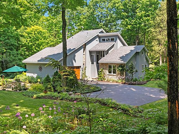 Style and functionality combine to create a beautiful year-round home or vacation getaway. This thoughtfully-designed, manicured property must be seen to be appreciated. Tucked away in the woods; a short path through the front yard will bring you to little-known public water access directly across the street. This home lives large, with vaulted ceilings, a den/office, four seasons sunroom, a loft, a full basement and many outdoor enjoyment spaces, including both deck and patio. The primary offers its own sitting room, plus large walk-in closet/storage space. It sits in front of DCLT acreage, and is a short drive to both downtown Fish Creek/downtown Egg Harbor. This could be YOUR Door County dream home. By appointment; call now.