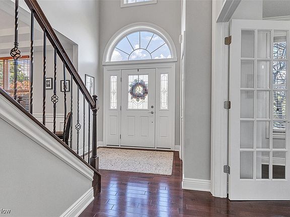Welcome to this gorgeous 4-bedroom, 4-bath colonial in Holden Ridge within the award-winning Mentor School District. Nestled on a wooded lot in Concord Township, this Kinez-built home features a dramatic two-story foyer leading to a light-filled great room with serene views and an open floor plan. The chef’s kitchen offers granite countertops, an island, and appliances, with a sliding door to a 625 sq/ft two-tier deck perfect for entertaining. The main level also includes a home office, laundry, guest bath, crown molding, and refinished hardwood floors. The master suite has a walk-in closet and a glamour bath with double vanities, garden tub, and walk-in shower. While upstairs, you’ll find three additional spacious bedrooms, refinished hardwoods in select areas, and a bonus room over the garage. The finished lower level boasts a custom Irish Pub-style wet bar with granite, wine fridge, included bar tables, optional pool table, an additional gym/bonus room, full bath, and storage. Outside features a side-entry 3-car garage, manicured landscaping, and a private wooded lot. This home combines luxury, comfort, and space in one of Concord’s most sought-after neighborhoods—don’t miss it!