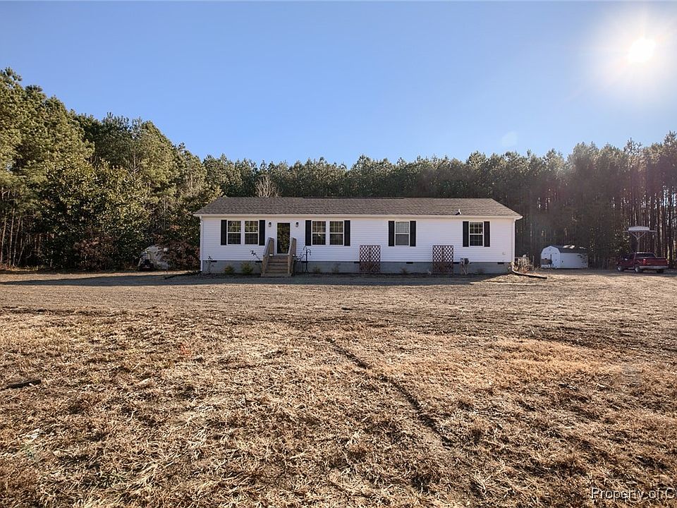 Situated on 12.15 acres this 3-bedroom, 2-bath home offers peaceful, private living. The open floor plan includes a spacious living area, modern kitchen, and a dedicated office space. The primary suite features a walk-in closet and ensuite bath, while the two additional bedrooms and a second full bath provide ample room. In addition, a 2-room shed with a common area offers versatile space for guests, storage, or a hobby area. The expansive land provides endless possibilities for outdoor activities, gardening, or creating your own private sanctuary. Property sold as is where is.