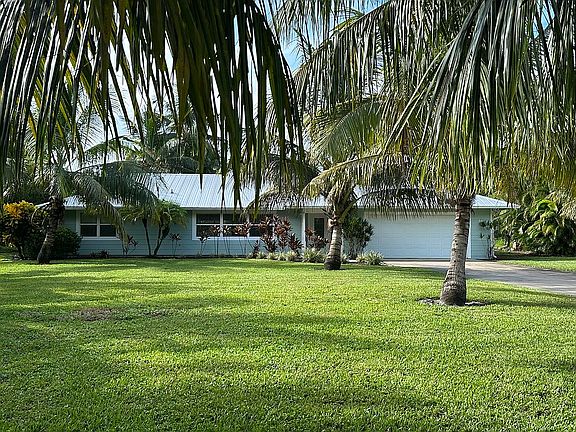 3/2 with newer pool just completed in 2023, oversized 2 car garage, on 1.18 acres spanning from street to street, providing access from either street. Move in ready with new impact doors and windows, metal roof, hardy board siding, appliances including stove, microwave, dishwasher, disposal, refrigerator, washer and dryer, solar water heater, solar panels for electric savings, well water, septic system, nicely landscaped with auto irrigation system, with no HOA makes this home very desirable with many options. Master bedroom has bonus room for office, exercise or nursery room. Master bath has his/her vanities, free standing tub and shower. Close to beach, parks, boat ramp, schools, restaurants and churches.