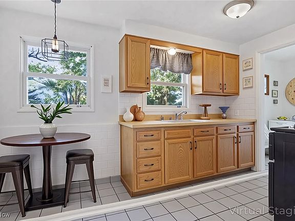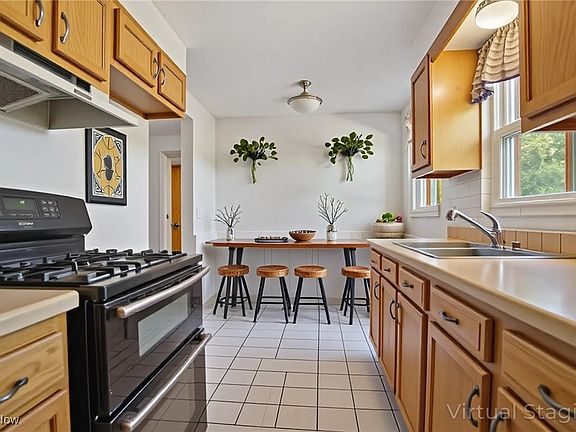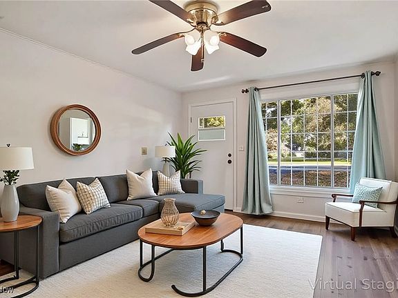 Located in a wonderfully located neighborhood in Mentor, this Brick Ranch home is just the right size for ease of maintenance. Offering 2 Bedrooms with generous closet spaces and ceiling fans plus a full bathroom with tiled floor and shower surround, new vanity, toilet and mirror. The eat in Kitchen is lined with oak cabinets, laminate countertops, gas stove and has a nice space for dining with tiled flooring that flows into the 1st floor laundry room with sink. Living room has several virtually staged photos to show the space and layout options along with additional virtually staged photos of areas to show the potential of this adorable home. Attached garage with open is oversized allowing for storage space. Head to the partially fenced back yard to see the opportunities to add a deck, patio or sunroom. Backing up to undeveloped land giving a spacious feel while close to amenities. Radon mitigation system already installed for peace of mind. Central Air and newer windows.