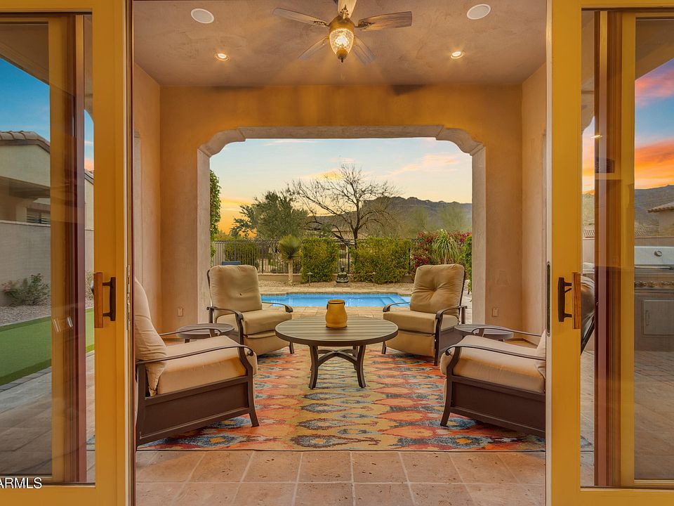 Private guest casitaMountain viewsOpen concept designResort backyardBocce ballBreathtaking superstition mountainsBuilt in bbq