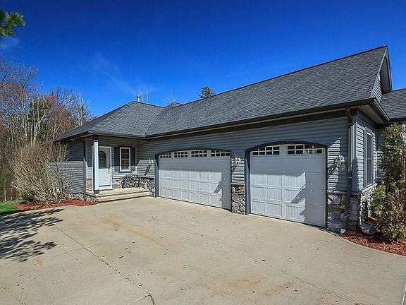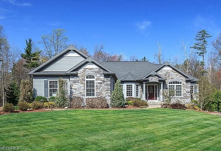 Are you looking for one floor living? This Sprawling Ranch with a 3 car side garage provides everyday living on one main floor. Owners suite and guest rooms each have private space of their own. This home has a second entrance, and is is ideally suited for one who works from home or has a need for an in-law suite. Upon entering you will find a spacious foyer with custom lit ceiling. The Great Room with stone fireplace offers wall to wall windows and overlooks a private wooded view. Wood floors run continuously throughout most of this home. The eat in kitchen is surrounded by natural sunlit windows, stainless steel appliances, and granite countertops. Access the deck from the kitchen and admire an unobstructed view of nature through the custom glass deck railings. The hallway leads to either a separate master bedroom with upgraded envelope ceiling, huge closet, glamour bath with jetted spa tub, walk in shower, and double sink vanity. The office or additional sitting room is perfect for anyone working from home or who may desire separate space to relax after a busy day. The dining room is an open layout to the rest of the home and boasts arched entrances, crown moulding, and suspended ceiling. On holidays the 2150 sq.ft above grade lower level is a great entertaining space and is partially finished with carpet, finished ceilings, half-bath, wet bar, escape windows, additional rooms and storage! Beautifully landscaped, irrigation system. Schedule a private showing today!