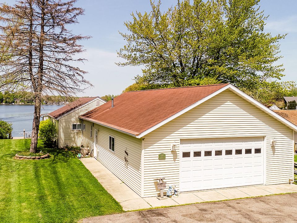 3 bedroom, 2 bath home with AWESOME views of the lake in the PRIVATE Pokagon Heights Beach Association on all sports Paw Paw Lake. Price includes your own boat slip with electric. Association owns approx. 500 feet of lake frontage with sand beach, grass picnic area and docks, paved private roads, public water & sewer. This home's interior is all new in the last 2 years, has gas heat & central air, and a HUGE attached garage with room for the pontoon, ski boat, golf cart AND the car!!
