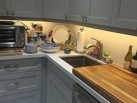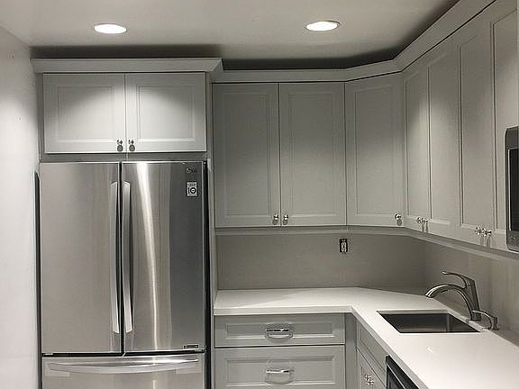 New kitchen , white marble bathroom , Recessed lighting thru out on dimmers , white tile thru out kitchen, dining, living and balcony . Sound out under tile . Steel front door . Accordion hurricane shutters . NEEDS : Carpet in bedroom and paint .
