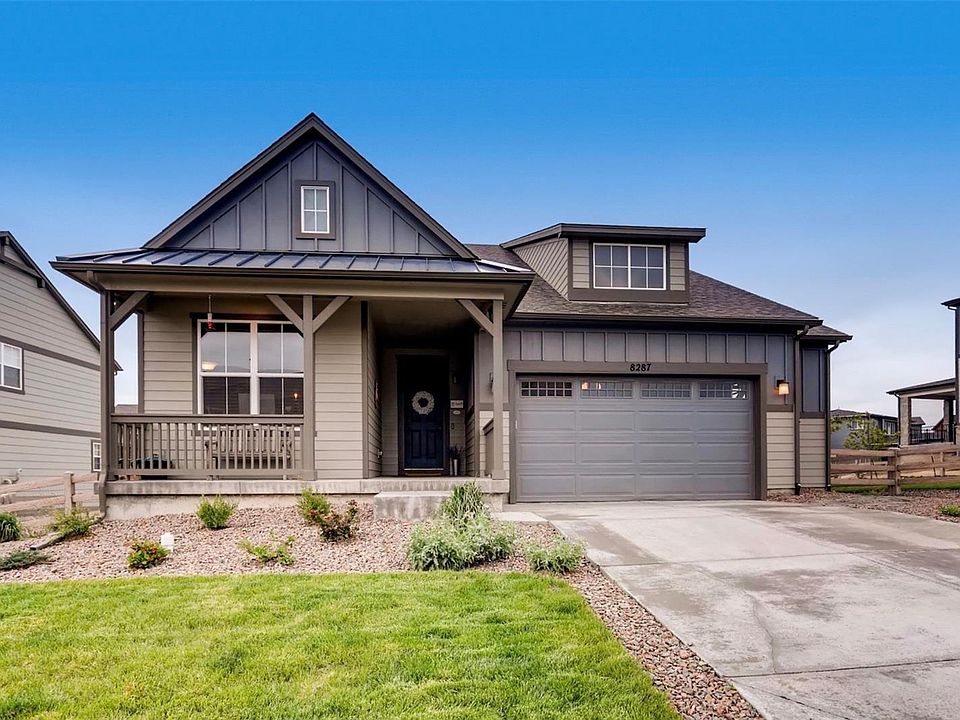 This gorgeous 1 year old home is BETTER than new! You can move right in! Already landscaped, with a stamped concrete patio, and window coverings, this modern farmhouse styled home is the perfect gathering spot. Sitting on an upgraded lot next to a greenbelt, with a fully finished basement, this roomy home has space for everyone. Main floor living is ideal with laundry room, flex space, beautiful kitchen, and master suite all conveniently located. Loads of upgrades were put into this home including: hardwood through the bulk of the main level, gorgeous updated gray cabinets, extra tall doors, 1 year old high end appliances, custom shiplap wall in the entry, and custom wood cladding on the gas fireplace. Also included is 1 gig of fiber, and pre-wired for Solar. Sterling Ranch is a fantastic new master planned community that will include trails, a rec center, an already existing medical center, and retail nearby. Buyers will be just a few minutes from 2 state parks and Waterton Canyon.
