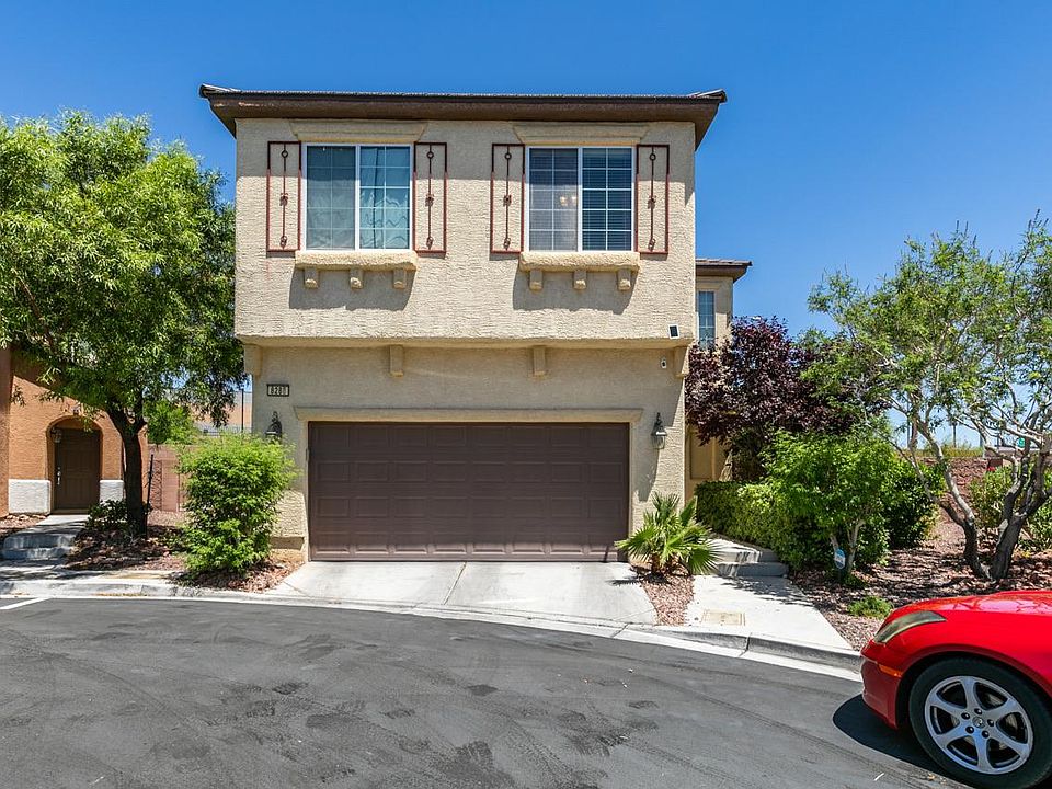 Beautiful well maintained 3bd, 2.5ba, 2 story corner lot home with easy access to the 95, Skye Canyon Village and lots of shopping & entertainment. Open floor plan with tile downstairs, granite counters in kitchen & cute breakfast bar. Stainless steel appliances included. New microwave, oven and dishwasher in 2021. New fridge in 2024. Upstairs boasts a large spacious loft, oversized master with his & hers oversized walk-in closet. Upstairs laundry, appliances included. Strip view from front bedrooms! Security doors on front and back doors. Largest backyard in the neighborhood, fully landscaped with real grass & patio space. Oversized two car garage with overhead storage! Sewage and Trash included and other Utilities and landscaping not included. Must pass credit check and criminal background check.