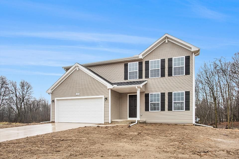 New construction home in Byron Gardens Estates located in Byron Center school district, to be complete in May/June. RESNET ENERGY SMART NEW CONSTRUCTION-10 YEAR STRUCTURAL WARRANTY. This 1,800 sqft. two story home is 264 sqft. larger than homes in this price point. Beginning on the main floor, an open concept layout greets with a large great room open to the dining nook. Spacious kitchen features white cabinets, a breakfast bar with pendant lighting, granite counters and tile backsplash. Tucked away but easily accessed are a powder bath and laundry room with washer/dryer. Upstairs find the spacious, primary bedroom suite, with a large WIC and private full bath. 3 additional bedrooms and another full bath complete this home with comfort and style in mind.