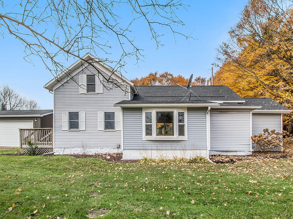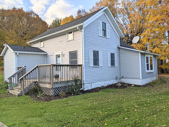 Beautiful piece of secluded property right here Almost 3 acres with a great division of woods, fenced pasture for horses and great sized yard surrounding the home. If you are looking for peacefulness and privacy this is it. It has a very nice and newer 24x32' pole barn, a chicken coop, old barn out back, and even the picture perfect tree with tire swing. This modernized farmhouse offers brand new beautiful flooring, updated bathrooms and fresh paint along with a newer furnace, roof and vinyl siding. It also has a main floor master bedroom with ensuite, a huge main floor laundry/mud room and wood stove. Upstairs, you will find 2 bedrooms, one is a loft area. Don't wait, you can have the animals and country living you have been wanting.