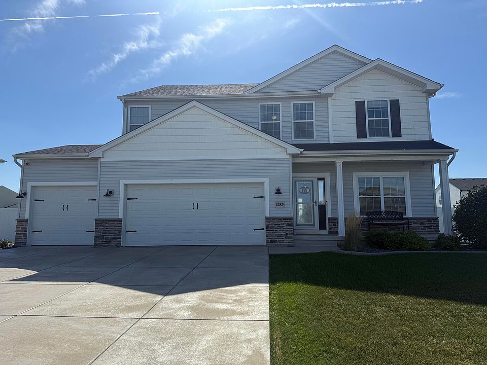 Welcome home to this stunning two-story residence, perfectly situated in the desirable Heritage Falls Subdivision. Built in 2018, this home offers a spacious and finished 2,906 square feet of meticulously maintained and modern living space. The sellers recently turned the upstairs loft area into a 4th bedroom. Key features - 4 bedrooms, 2.5 bathrooms, open concept on the main level, gourmet kitchen with granite countertops and backsplash. Cozy living room with a fireplace, office space - or it can be used as a flex room, elegant board and batten foyer and a newly finished basement with a beautiful electric fireplace. There is new carpet throughout the home and many other updates. This subdivision sits right across from Freedom park and the home offers the perfect blend of luxury, comfort, and convenience. Don't miss the chance to make this exceptional modern house your new home!