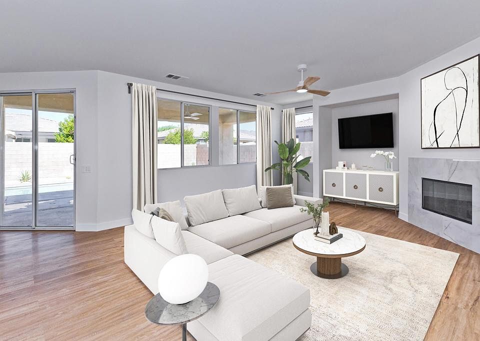 - Updated 3BR/2BA Single Family Home in the highly sought after gated community of Generations- Lovely updated home with an open floor plan- Open to the kitchen the large living room with gas fireplace has direct access to a covered patio and gorgeous pool & spa, perfect for indoor/outdoor living and entertaining- Separate formal dining room - Chef's eat-in kitchen with tile countertops, center island and a 4-burner gas range- Large primary bedroom, with direct access to the covered patio and pool deck, ensuite spa-like bath with soaking tub and separate shower and walk in closet- 2 additional excellent sized bedrooms- Guest bath with shower over tub- Separate laundry room - Private low maintenance yard with beautiful pool & spa and mountain views- Covered patio with recessed lighting and ceiling fans- New vinyl flooring throughout and brand new carpet in the bedrooms- New ceiling fans and new LED recessed lights throughout - Double paned windows throughout- 2-car side by side garage with extra storage- Fantastic Indio location close to freeways, schools, shopping centers and renowned golf courses