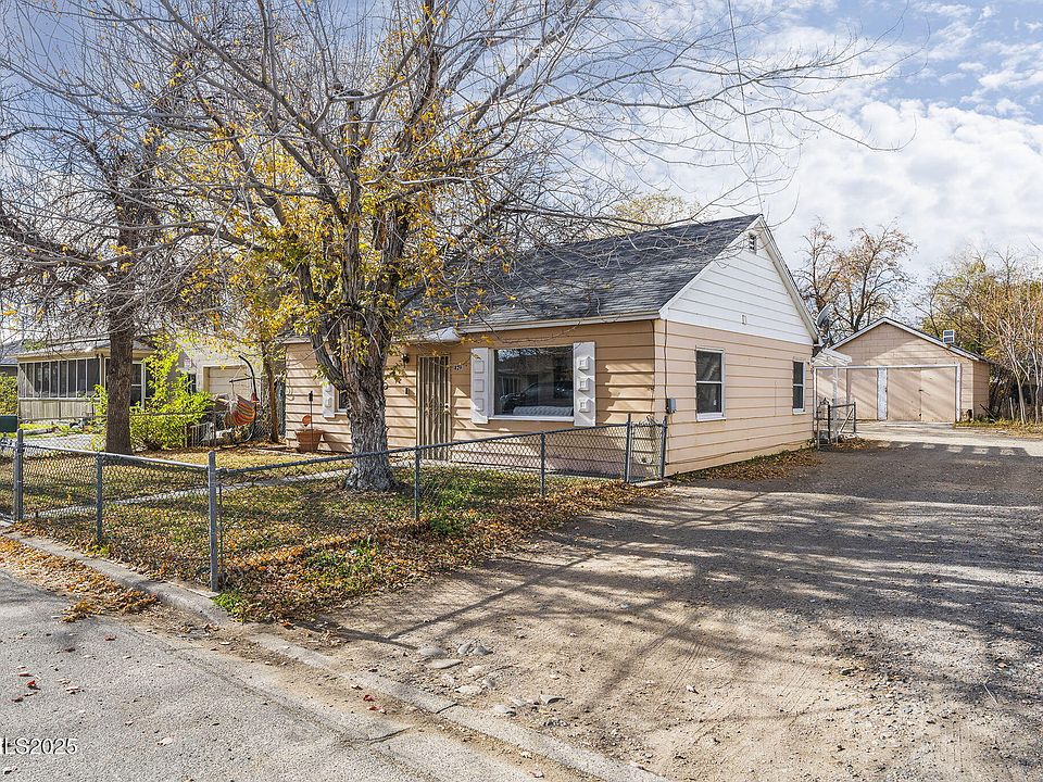 This adorable two-bedroom, one-bath home offers comfort, convenience, and thoughtful updates throughout. Centrally located in the heart of Sparks and just minutes from downtown, this home is perfect for those who want to be close to shops, dining, and entertainment. Recent upgrades include newer furnaces, updated PEX plumbing, and mostly new vinyl windows for improved efficiency. Inside, you'll find fresh interior paint, carpet installed just two years ago, and a brand-new toilet. The cozy children's room features a delightful custom paint job—adding a playful touch of personality. A security system is also in place for peace of mind. The spacious backyard is perfect for outdoor living and play, featuring a large, fully fenced area with a gated dog run—ideal for pets to roam safely. A brand-new children's play set adds a fun touch for families, while the covered patio offers the perfect spot for barbecues, morning coffee, or relaxing in the shade. A detached two-car garage provides ample storage and parking, with a long driveway running along the north side of the parcel for added convenience and extra space for vehicles, trailers, or toys. Whether you're entertaining, gardening, or simply enjoying the outdoors, this property offers the perfect blend of comfort, function, and flexibility right in the heart of Sparks.