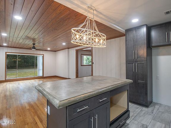 Check out this beautiful, renovated home in Wiggins, situated on nearly an acre of land! This unique property boasts tongue and groove ceilings throughout, adding character and charm. The luxury primary bathroom offers a spa-like retreat, while the open kitchen features gorgeous concrete countertops and a custom hood vent, all bathed in natural light.