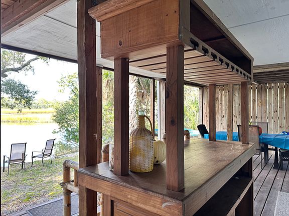 WATERFRONT The Salty Nest- Perfectly tucked away along the salt water tidal creek and close to everything! With 2 bedrooms including 1 queen bed and 2 twin beds, along with a well-equipped bathroom and full kitchenette; this amazing property provides all the comforts of home. Book now and enjoy everything this home has to offer.